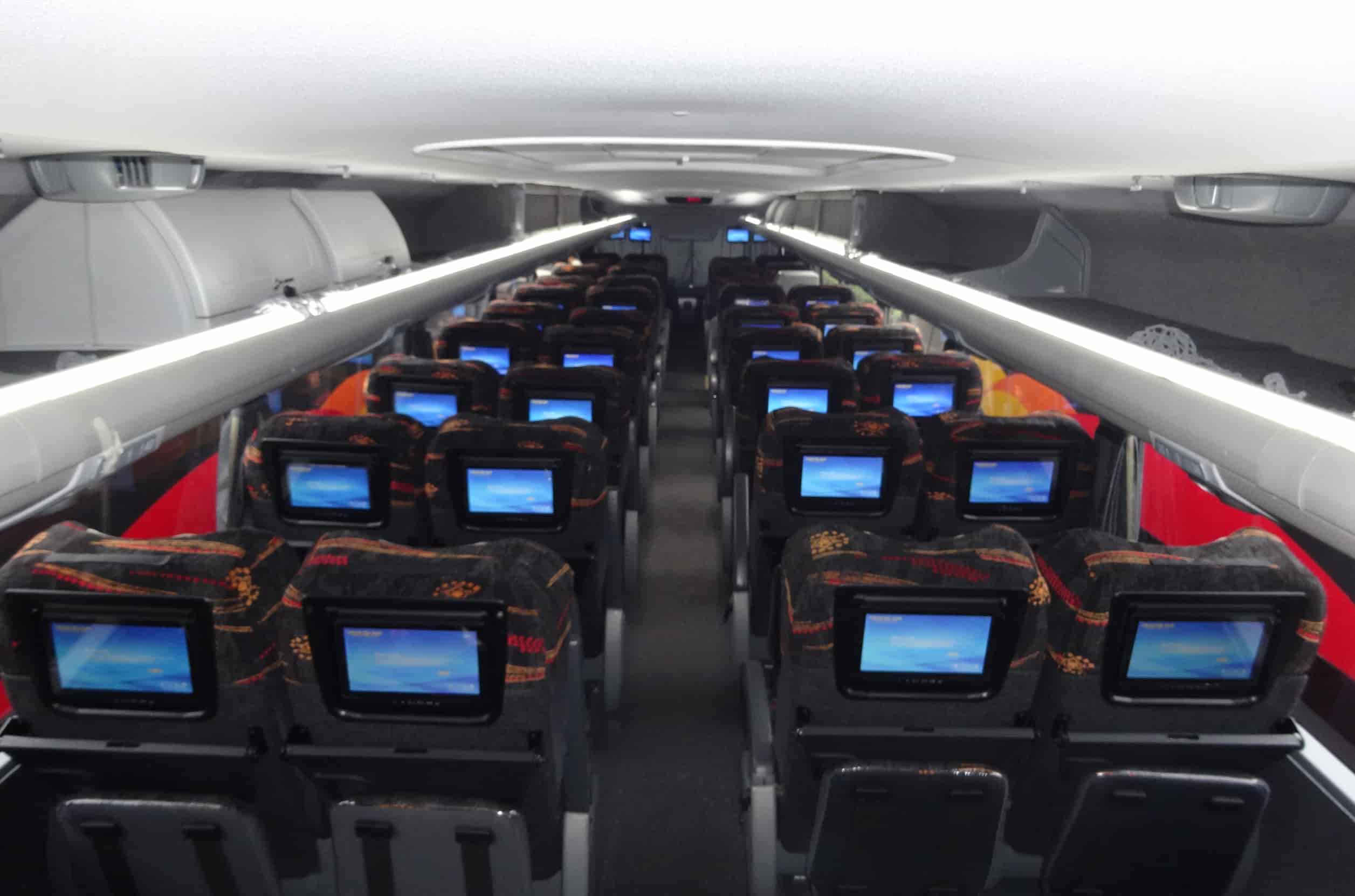 All buses have comfortable seats  with at least 140° recline and most of the buses have onboard entertainment with selected movies (160° recline seats are also available as extra in the extra section before checkout).