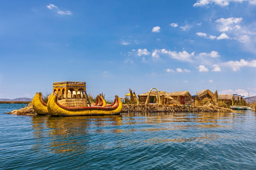 The Uros floating islands are a group of islands built from reeds by the traditional Uros residents.